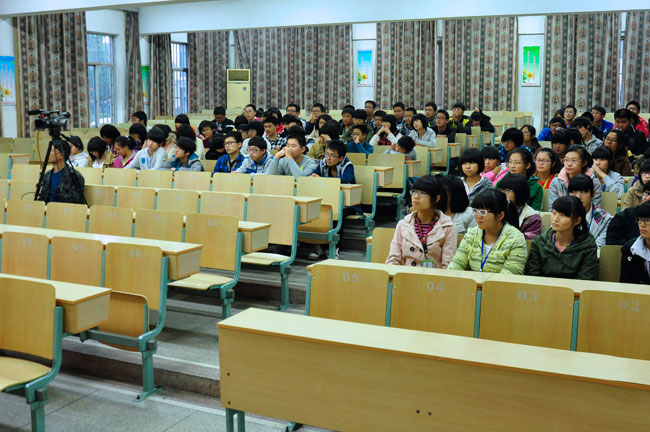 多媒体报告厅的同学们认真聆听讲座