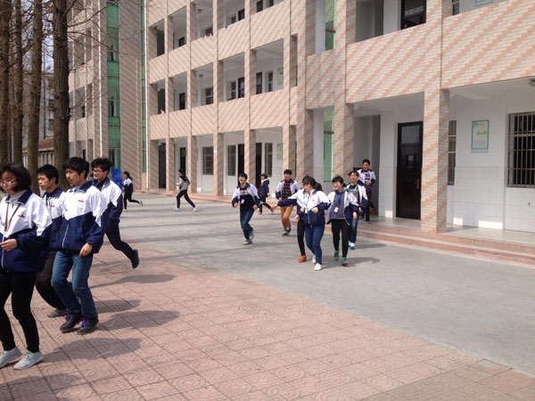 演练开始前,学校政教处、安保处制定好了演练方案,各年级、各处室相互协调合作,各班班主任向同学们介绍了逃生路线、逃生知识以及有关注意事项,充分做好了准备工作。12时25分,随着急促的警报声响起,演习正式开始。各班同学闻声而起,随手拿起遮挡物做好掩护,沉着冷静,迅速地撤离教室,按照预案快速有序地疏散。由于已是多次参加演练,同学们在疏散时做到了快而不乱,秩序井然。全校师生1600多人从各班教室内迅速撤离到指定地点,用时2分53秒。经过详细清点人数,疏散中无一学生滞留在教室,全都安全快速到达目的地。演练结束后,全体参演同学集中到国旗广场,副校长陈立新作了演练小结。他扼要阐述了举行紧急疏散演练的重要意义,希望同学们严肃认真对待,强化安全意识和集体主义观念。