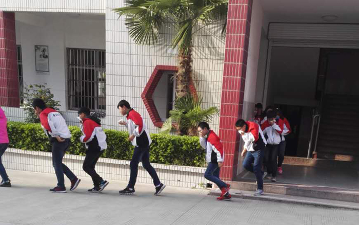 演练之前,安保处主任孙井林利用中午时间在国旗广场召开消防安全疏散演练的预备会,对各班班主任进行了战前培训,强调了有关注意事项。下午4时50分演练指令发出后,只见华章楼内初一和高一年级的学生在班主任的指挥和带领下,按照之前培训的要求:“用湿毛巾捂住口鼻、猫腰、低头、小步、快走”迅速而有序地撤离教室,快步到达疏散集合地点(国旗广场)列队集合。整个疏散过程只用了不到2分时间,370多名师生全部从各班教室迅速撤离到指定地点。整个过程中,各岗位人员尽职尽责,学生们疏散紧急有序,经过详细清点人数,疏散中无一学生遗留在教室,全部安全快速到达目的地。活动结束后,学校陈立新副校长对本次演练进行了小结,强调了消防演练的重要性。