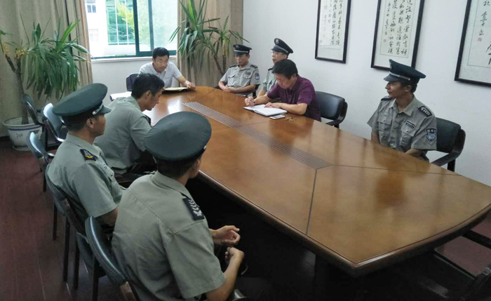 孙主任首先通报了上学期学校安保工作情况,对全体门卫安保人员所付出的辛勤劳动表示衷心的感谢,同时对新学期的安保工作作出了具体部署,提出了明确的要求。他说,开学在即,全体门卫安保人员思想上要高度重视安保工作,行动上要主动作为,对学生及家长要做到热情周到服务,对入校车辆要引导做到有序停放,圆满做好开学工作,确保校园和谐平安。孙主任还对全体保安再次进行了校门安全管理培训,并要求新上岗的保安陈忠军同志迅速熟悉情况,适应工作。