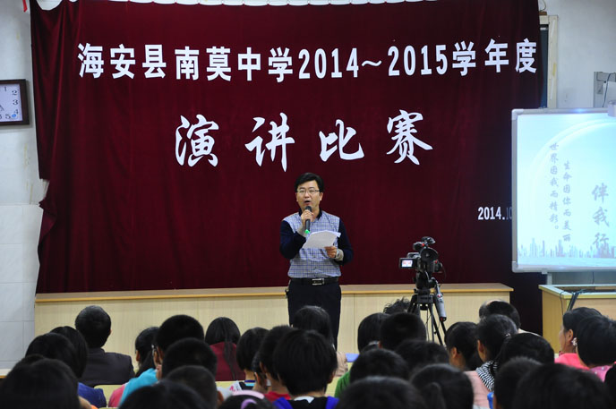 为进一步践行社会主义核心价值观,坚持以学生的德育教育为先,通过对文明礼仪知识的学习和实践来教育学生,传播文明礼仪,弘扬中华民族传统美德,构建“文明校园、和谐校园”。2014年10月21日下午,由学校政教处、教科室、团委共同举办了海安县南莫中学“文明礼仪伴我行,我为南中添光彩”的主题演讲比赛。