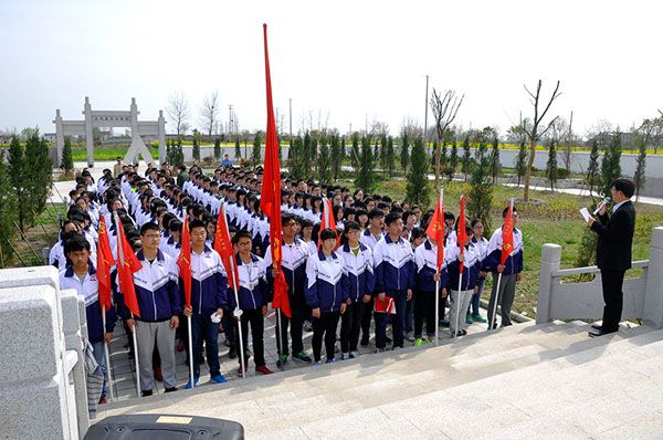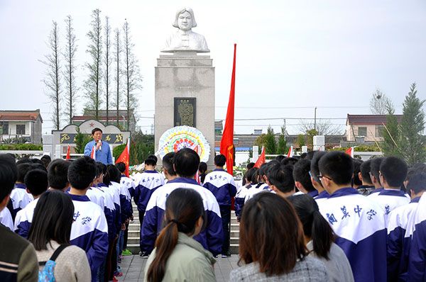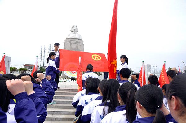在纪念碑前,全体师生怀着无比崇敬的心情举行了庄严的祭扫仪式。首先,学生代表向革命先烈敬献了花圈,全场默哀,缅怀先烈。接着,讲解员柳亚西向广大师生介绍了回香庵战斗和被誉为“苏中刘胡兰”的高凤英烈士的生活战斗情况,声情并茂的解说使全体师生深受感动。教师和学生代表先后发言,表达了继承先烈遗志,发扬革命传统的决心。随后,由高一(7)班史诗佳同学领誓、全体共青团员在高凤英烈士纪念碑前面向团旗重温了入团誓言。整个活动庄严、肃穆,大家受到了一次很好的革命传统教育和爱国主义教育,增强了历史使命感和社会责任感。