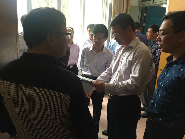 2016年5月6日海安县教育局张永强副局长等一行校园安全检查组来到南莫中学,对学校校园安全工作进行了全面细致的检查,苏中潜校长、陈立新副校长以及学校政教处、安保处全体同志陪同检查。