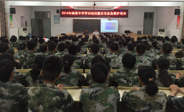 开营仪式在激昂的国歌声中拉开序幕,苏中潜校长作了热情洋溢的开营动员报告。他首先代表南莫中学校长室、党总支部向进入南莫中学学习、生活的2016级高一新生表示热烈的欢迎,对组织、参与本次军训工作的全体教官、教职员工表示崇高的敬意和衷心的感谢。苏校长接着介绍了近几年学校的教育教学发展成果和优良的军训传统,明确了高中军训的重要目的和意义。接着,苏校长对全体参训同学提出了具体要求和希望:第一,端正训练态度,增强纪律观念,不怕吃苦,不畏艰难,做到一切行动听指挥。第二,要尊重教官,服从教官指挥。虚心向教官学习,学习他们的好思想、好作风及优良品质,并以此为动力,刻苦学习文化知识,将来更好地报效祖国,回报社会。第三,处处严格要求自己,勇于接受艰苦的训练。精神要饱满,动作要到位,认真完成每个训练科目。第四,要树立团队合作意识,珍惜集体荣誉,树立良好形象。希望全体同学在教官们的教导下,团结合作,自觉磨练顽强意志,努力完成各项训练任务,为今后的学习、生活打下良好的基础。