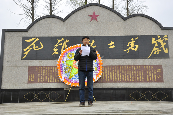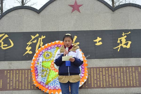 中午13时20分,高一年级全体师生整齐地集合在学校广场,副校长陈立新作了动员讲话。他扼要阐述了扫墓活动的重要意义,并强调了纪律、安全等注意事项。经过一个多小时的步行,师生一行到达位于南莫青墩的高凤英烈士陵园。在英雄纪念碑前,师生们向革命先烈敬献花圈并默哀三分钟,教师代表致悼词,学生代表作了《慎终追远,缅怀先人》的主题演讲,表达了继承先烈遗志,发奋努力学习的决心。然后,讲解员向大家生动讲述了回香庵战斗和高凤英烈士英勇斗争的事迹,使广大同学深受感动。在绕陵园一周的过程中,不少同学向墓碑敬献了自己亲手制作的小白花。整个活动庄严、肃穆,大家受到了一次很好的革命传统教育和爱国主义教育,增强了历史使命感和社会责任感。