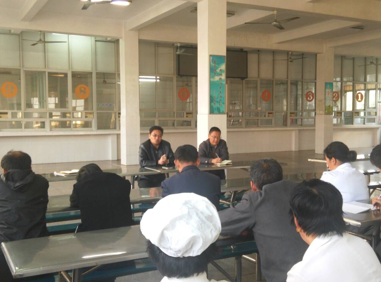近期气温下降,骤感寒冷,为切实保障学生饮食健康,学校总务处召开专题会议,要求餐厅各班组对此项工作高度重视,可以通过加盖棉被、推迟成品进入售饭区的时间、售饭窗口开启保温加热设备、延长蒸汽锅炉供汽时间等措施对饭菜进行保温。会上,学校分管后勤的李慧校长对办好学生食堂从三个方面提出要求:一、安全。安全重如泰山,如何确保食堂食品安全,关键是严格按照食堂操作规程做事,在自己的岗位上集中注意力把各自的岗位职责履行好,把各个环节细致、认真的做到位,就不会出食品安全事故。二、优质。李慧副校长对食堂全体工作人员提出:要把对全校师生优质服务作为食堂工作的努力目标和不断前进的方向,要让优质服务师生的思想深入全体员工的骨髓。三、精细。每一位食堂工作人员要把学生食堂当作自己经营的事业来干,处处精打细算,减少不必要的支出,努力在物价上涨的大环境下尽量减轻学生、家长的负担。