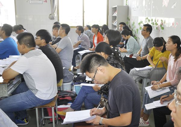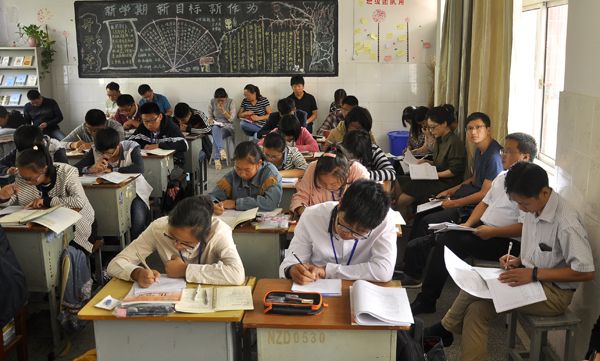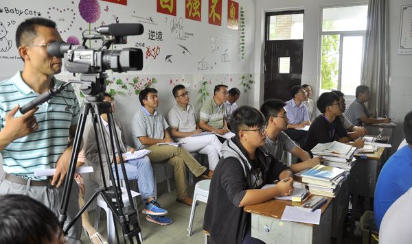 各位教研员首先深入课堂听课,然后和备课组老师进行交流。他们认真查看了集体备课的教案、学案和说课稿,详细了解说课式集体备课的落实情况;他们还随机抽查了部分老师的备课笔记、听课笔记以及学生作业的批改情况,与被听课教师进行交流,肯定成绩,指出不足,提出建议。更令人感动的是,物理教研员王辉生老师还为物理教研组老师上了一堂高三物理复习示范课,身先士卒,传经送宝,物理老师受益匪浅。