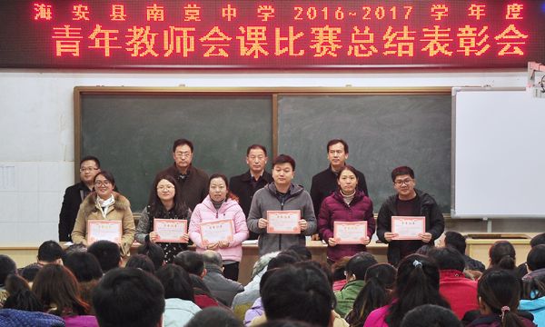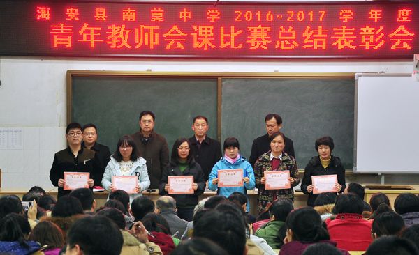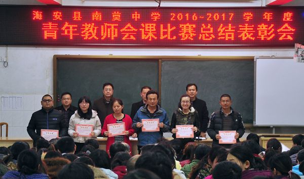 12月5日下午,南莫中学在大阶梯教室召开“海安县南莫中学2016—2017学年度青年教师会课比赛总结表彰会”,为期一周的“青课赛”终于圆满落幕。