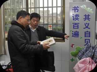 | 专家组视察班级图书角 | 专家组视察教师阅览室 |
