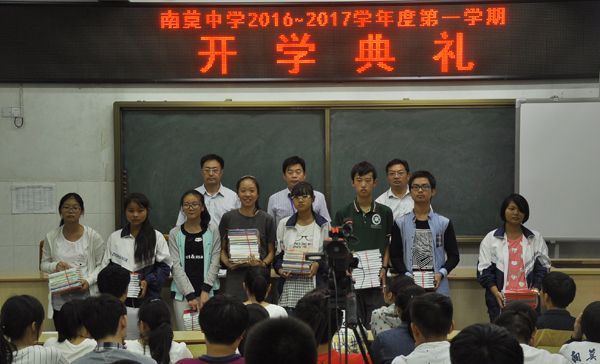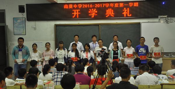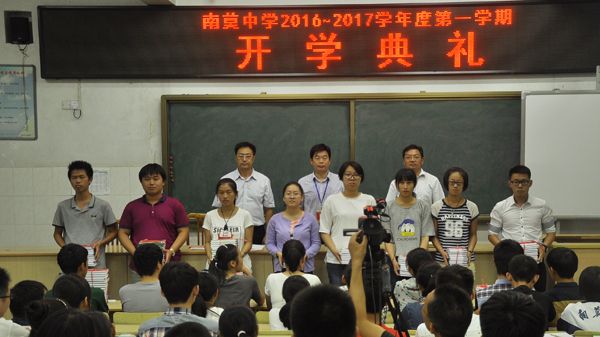 首先,教务处周主任向同学们简要通报了南莫中学在2016年高考和中考以及非毕业年级在上学期期末调研测试中所取得的喜人成绩,同时还介绍了南中学生在各级各类学科竞赛中的获奖情况。他说,过去的一年,经过全体师生员工的共同努力,我们收获多多;新的一年,我们鼓足士气,信心满满。苏校长在大会上致辞,他说,初一和高一年级新同学的到来给学校增加了勃勃生机,他代表学校校长室和党总支部对全体新同学表示最热烈的欢迎,对全校教职工和全体同学表示亲切的问候和良好的祝愿,向过去一年为学校教育教学工作付出辛勤劳动的全体师生员工表示衷心的感谢。新学年要有新气象,他从立德树人的高度,对新老同学提出了三点期望和要求:第一,要正确认识学习的目的和意义,关键是学会做人;第二,要努力培养良好的行为习惯,重在自我管理;第三,要认真学习法律知识,增强法制观念,自觉遵纪守法。