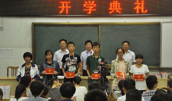 最后进行表彰颁奖。教务处周主任宣读了上学期获得奖学金的学生名单,本次评奖共有56名同学获得奖励,其中特等奖2人,一等奖9人,二等奖14人,三等奖31人。颁奖仪式在激昂的《运动员进行曲》乐曲声中进行,学校领导向获奖者颁发奖状并合影留念。