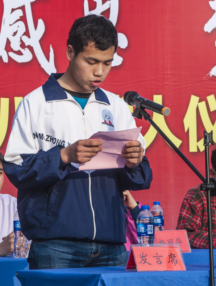成长,离不开父母一点一滴的付出;成长,在父母的搀扶下一步一个脚印的前进;成长,在父母温暖的羽翼下拔节蹿高。而终有一天,孩子长大成人后会离开父母的怀抱。乌鸦反哺,羊羔跪乳,长大成人、成才的孩子会搀扶起年迈的双亲,尽自己的孝道。学生家长代表发言时,真挚的话语、感人的事迹打动了在场每一位师生的心灵,更坚定了同学们成长与放飞的勇气。