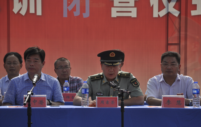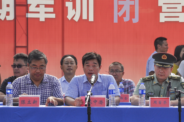 在庄严地国歌声中,闭营仪式拉开序幕。首先,军训团政委、学校校长、党总支部书记苏中潜和县人武部政工科科长周吉荣在总教官李进的陪同下一道检阅了受阅方阵。