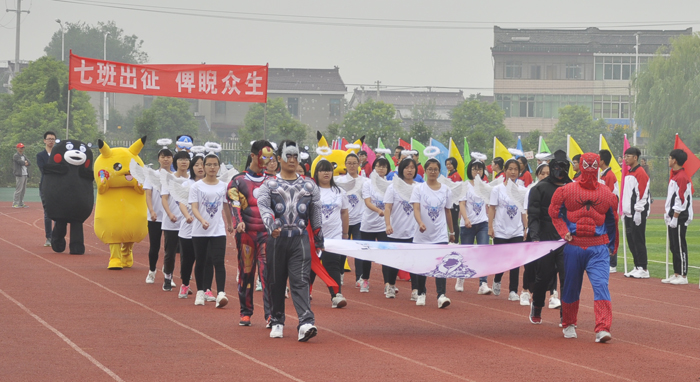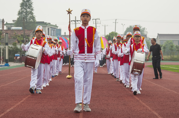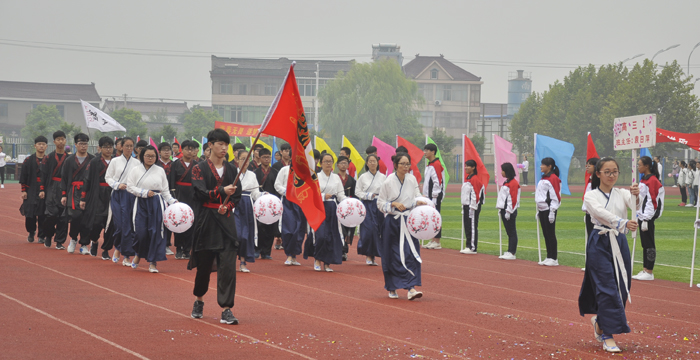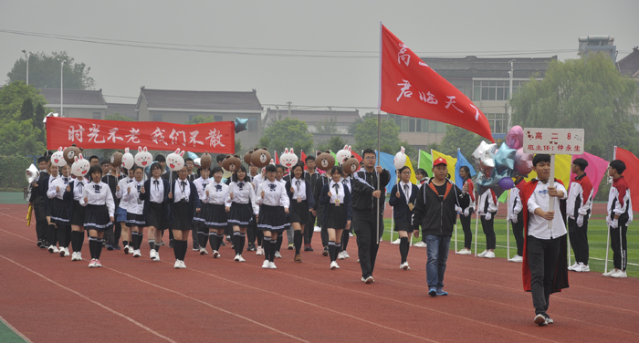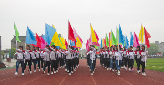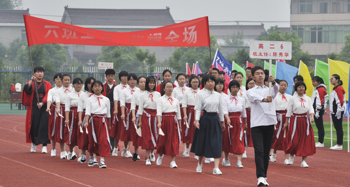 伴随着激昂的运动员进行曲,护卫队手持国旗、校旗、运动会会旗依次走过主席台,各班代表队依次入场,身着独具个性的服装,高喊嘹亮的口号,迈着矫健的步伐,动作整齐,英姿飒爽。精彩纷呈的入场式充分展现了南莫中学健康快乐、斗志昂扬的精神面貌。