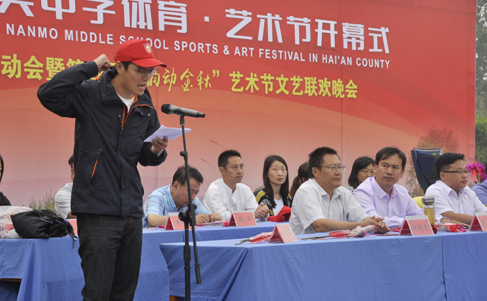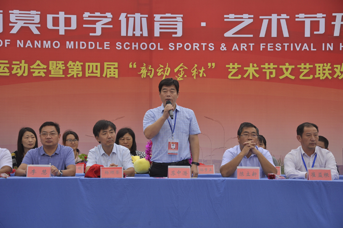 南莫中学党总支书记、校长苏中潜宣布南莫中学第54届运动会正式开幕。在号鼓喧鸣声中,阵阵爆竹响彻云霄,象征着南莫中学师生百折不挠,勇攀高峰的精神品格。