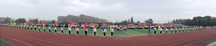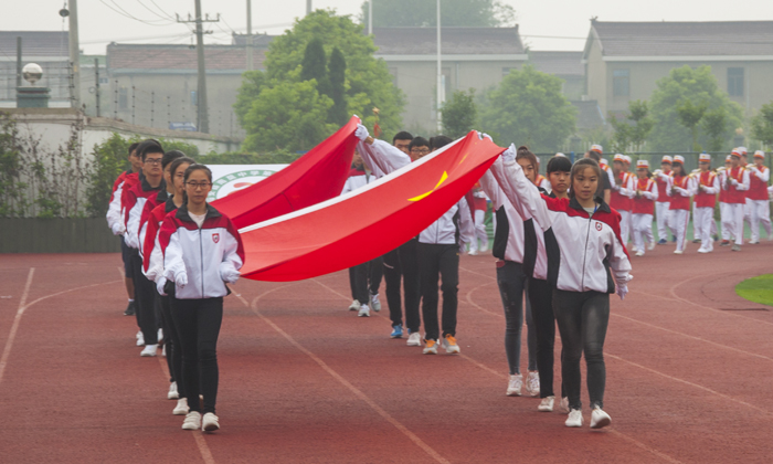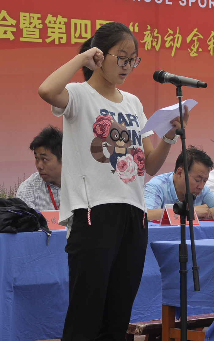 高二(1)班夏雨荷同学、顾翔老师分别代表运动员和裁判员宣誓。 铿锵的誓词代表全校师生对此次运动会的高度热情。