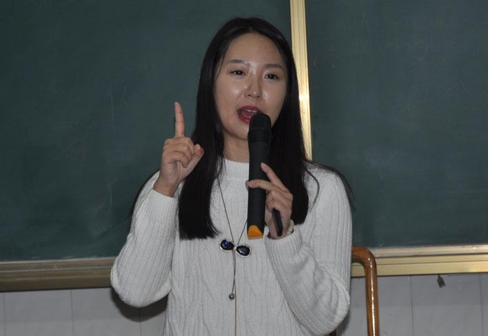 首先,由学校团委书记薛玉林对陈沫女士的简介作了介绍,在会场所有同学的万分期待中,“CM学姐”走上讲台,以轻松幽默的语言拉开了报告会的序幕。她别出心裁地借用电视剧《武林外传》的人物形象,介绍了自己求学的波折经历,分享了自己的成长故事。在演讲中,她从方向、方法、心态三个方面引导同学们要明确目标,找准方法,摆正心态。通过大量饱含哲理的图片展示、风趣搞笑的语言与同学亲密互动,分享自己的学习方法与心得,引导同学们树立远大的理想和目标,积极尝试新的学习方法,用积极的心态为实现自己的人生梦而奋力拼搏。“CM学姐”的精彩演讲博得全体师生不时爆发出热烈的掌声。