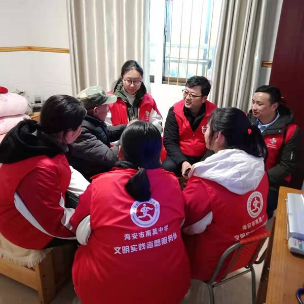 今年3月5日是第56个学雷锋纪念日,也是第20个中国青年志愿者服务日。为培育和践行社会主义核心价值观,大力弘扬雷锋精神,积极倡导志愿服务理念,深入推进新时代文明实践,3月5日下午,南莫中学德育处和团委组织高一年级的青年志愿者服务队来到南莫镇沙岗敬老院以及老复员军人和老党员家中,关爱孤寡老人,慰问老军人和老党员,践行雷锋精神和志愿服务理念,争做新时代文明海安人。