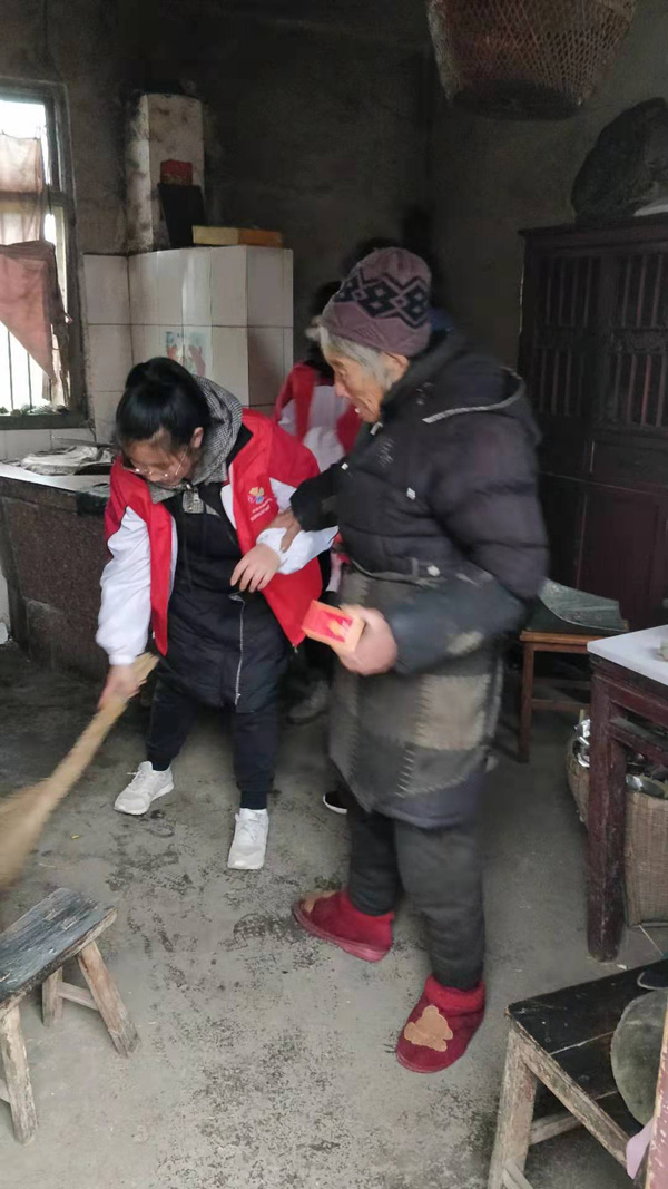 下午四点,身穿南莫中学文明实践志愿服务马甲的志愿者们在德育处副主任张楠和安保处副主任朱国平和团委书记薛玉林的带领下先后来到严马村十六组老复员军人王正祥和南莫村二十组新中国成立前老党员李巧英的家中,和两位老人交流谈心,给他们送上慰问品,帮他们打扫房间、整理环境卫生。两位老人虽然都年过九旬,但精神矍铄,非常健谈。王正祥老人1947年参加中国人民解放军,参加过抗美援朝,回忆起自己当年的军旅岁月依然心潮澎湃,他给同学们分享了亲身经历的战斗故事,给年轻的志愿者们上了一堂生动的革命传统教育课。李巧英老人也回顾了自己参加革命和建设的那些激情燃烧的岁月,希望志愿者们不忘初心,砥砺前行。