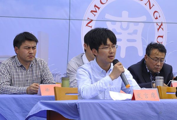 光明日报社市场部经理田杰在主席台发言