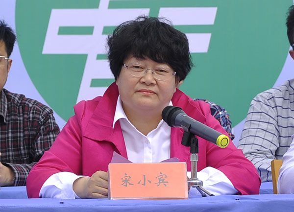 中国邮政海安分公司总经理宋小宾在主席台发言
