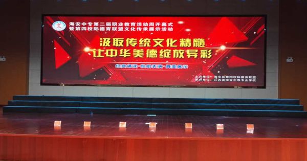 5月10日,江苏省海安中等专业学校第二届职业教育活动周开幕式暨德育联盟经典诵读活动在海安职教中心隆重举行。此次活动以蕴涵爱国主义、崇尚道德真善美的传统题材为主题,采用经典诗歌诵读的形式,以达到弘扬优秀文化,弘扬中华美德的目的。该活动有海安中专承办。我校作为第四德育联盟的成员也应邀参加。