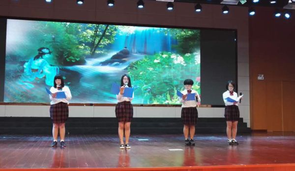 海安县南莫中学由王伟平老师指导的配乐诗朗诵《三生石》,图文并茂,诗音画俱全,在众多参赛作品中,脱颖而出,大放异彩。我校高一(6)班于文欣、王雨晴、刘妍和高一(4)班的吕咛同学朗诵更是激情飞扬,发挥出色,获得了全场评委和观众的热烈的掌声。